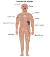 The cells of both parts of the immune system are made in different organs of the body, including: